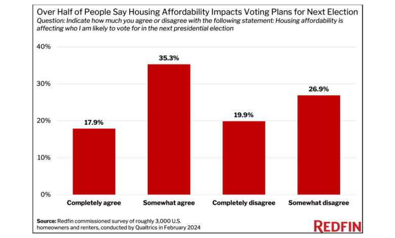 SEATTLE–(BUSINESS WIRE)–(NASDAQ: RDFN) — More than half (53.2%) of U.S. homeowners and renters say housing affordability is impacting who they plan to vote for in the upcoming presidential election. That’s according to a new report from Redfin (redfin.com), the technology-powered real estate brokerage.