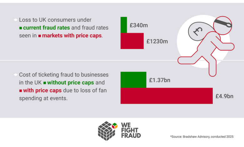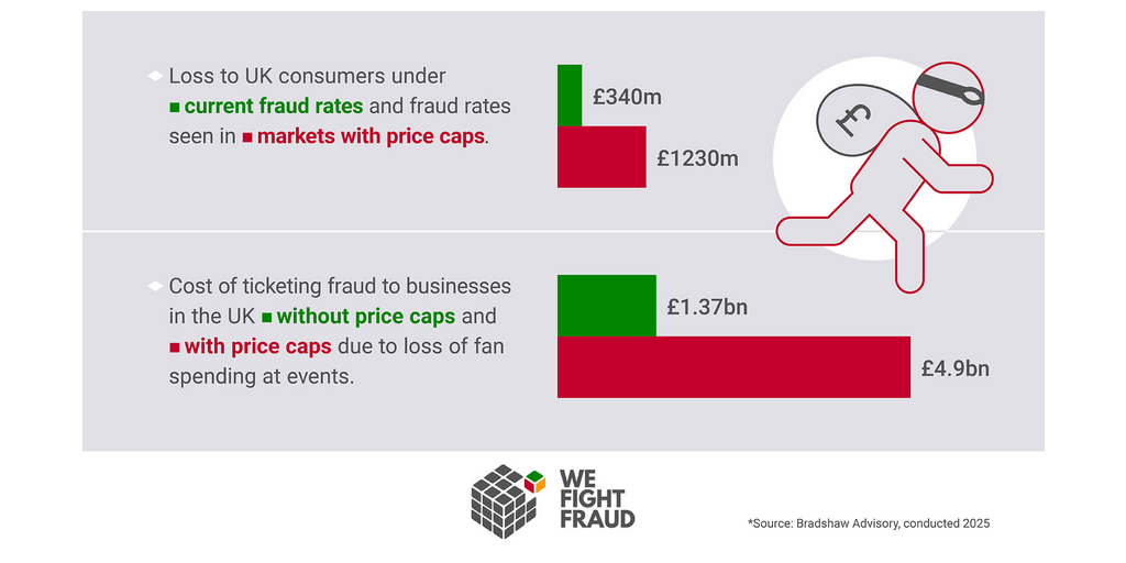 Yet this pales into insignificance with how much consumers would lose in the event of a mooted price cap being introduced. New figures from Bradshaw Advisory, backed by independent research from We Fight Fraud, suggest that number would quadruple as ticket resales migrate from the regulated secondary market to social media.