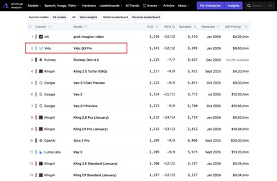 According to the latest rankings from AI benchmarking authority Artificial Analysis, Vidu Q3 ranked No.1 in China and No.2 globally. The model placed ahead of several leading international video generation platforms, positioning Vidu among the world’s top-tier solutions. Artificial Analysis data also indicates that Vidu Q2 maintains the fastest generation speed globally among commercial-grade content generation models.