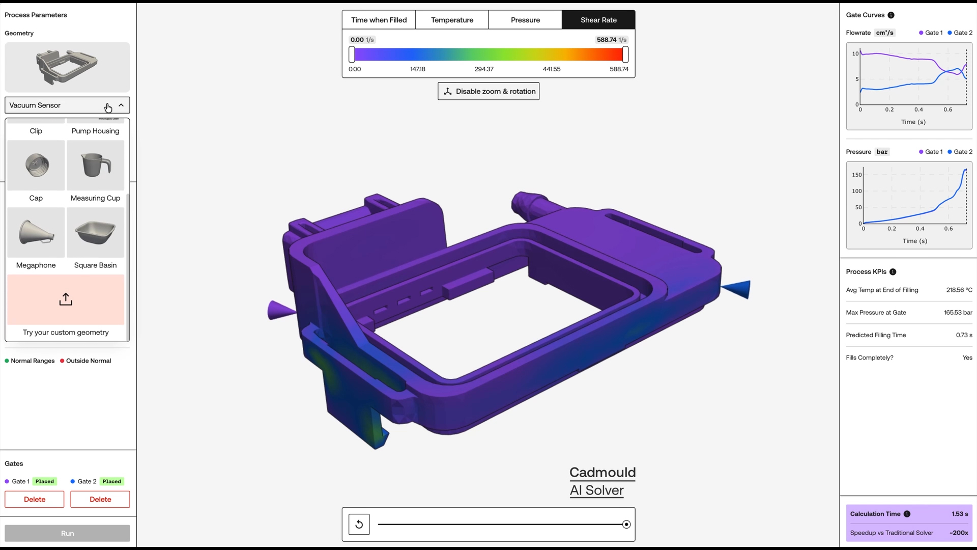 Crucially, the new AI technology is designed to complement, not replace, traditional numerical solvers. In this new paradigm, engineers use the Cadmould AI Solver in the early stages to rapidly explore the solution space and narrow down the optimal process window. Once the ideal design is identified, the classical numerical solver within Cadmould Flex is used to perform the ultimate, highest-precision validation required for final manufacturing sign-off.