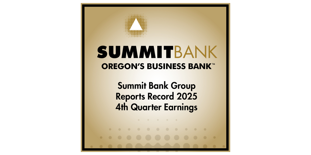 “We were excited to add foundational-type relationships in all of our markets throughout the year,” said Wanichek, “and are seeing substantial growth in professional firms, new and existing locally owned businesses and non-profits. Overall, Summit Banking Group’s fourth quarter results reflect continued strength in both loan and deposit demand, reflecting the confidence our clients place in Summit Bank and the resilience of the Oregon markets we serve. As we look ahead with cautious optimism, we are focused on delivering responsive, relationship-driven banking that supports sustainable growth.”