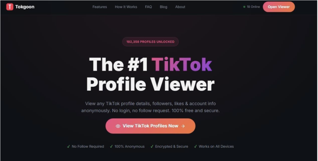 Tokgoon is positioned as a Private Tiktok profile viewer tool that’s used for quick, low-friction