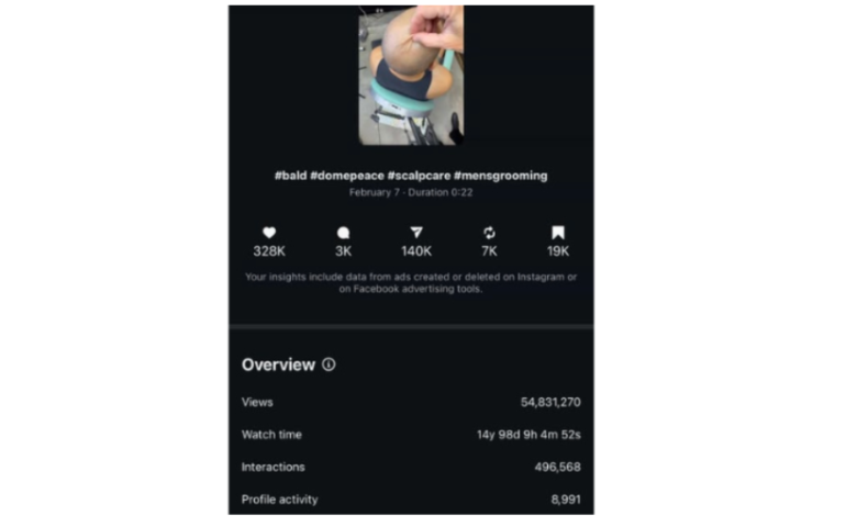 The story moment is simple. The video content opens with a hook that feels slightly “wrong” in the best way. An unnatural pull on bald skin. Quick. Visual. A little hypnotic. It makes your brain tap the brakes mid-scroll because it looks like something you should not be seeing, but you can’t look away either. That one second did the heavy lifting. People stopped, then they stayed, because the clip didn’t waste their attention. It earned it. And once the viewer was locked in, the reel pivoted into something oddly satisfying: a straightforward routine that made scalp care feel less like “work” and more like a ritual you can actually keep up with.