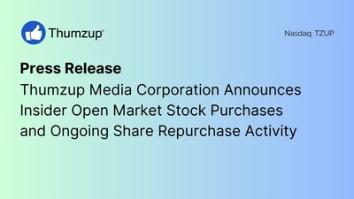 View original content to download multimedia:https://www.prnewswire.com/news-releases/thumzup-media-corporation-announces-insider-open-market-stock-purchases-and-ongoing-share-repurchase-activity-302408195.html