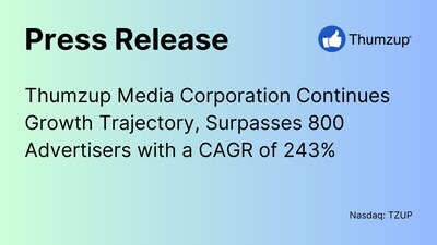 View original content to download multimedia:https://www.prnewswire.com/news-releases/thumzup-media-corporation-continues-growth-trajectory-surpasses-800-advertisers-with-a-cagr-of-243-302416942.html