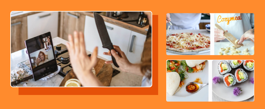 Cozymeal provides interactive cooking classes and culinary workshops as part of its online team building company offerings. Participants cook alongside professional chefs, often using shipped ingredient kits.