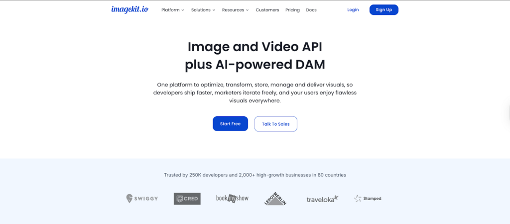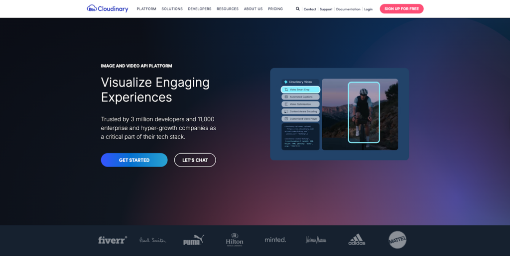 A very broad media platform that covers image optimization, video transcoding and delivery, upload workflows and a full DAM. It is usually chosen by teams that want a single service for both images and video with strong asset management features and are comfortable with a large, feature-rich API surface.