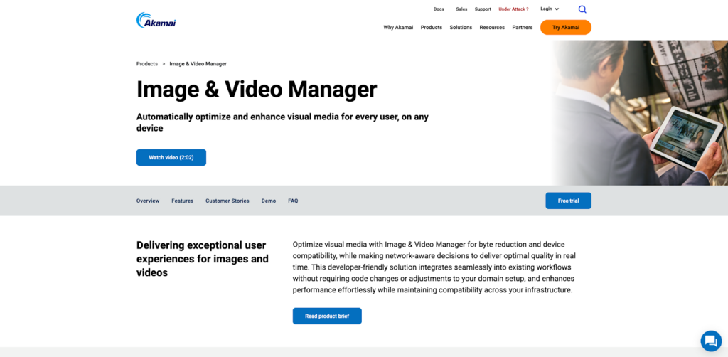 An enterprise-focused solution that runs on top of Akamai’s very large CDN footprint. Image and Video Manager automatically optimises images and short form video per device and network conditions. It tends to be used by big media, telco and retail organisations that already have Akamai contracts and want optimisation layered into that existing agreement rather than a separate specialist provider.