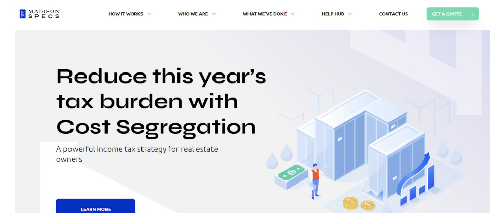 Madison SPECS works exclusively in cost segregation and serves a broad base of real estate investors. As an affiliate of Madison Commercial Real Estate Services, the firm operates with a strong understanding of how depreciation strategy intersects with valuation and investor reporting.