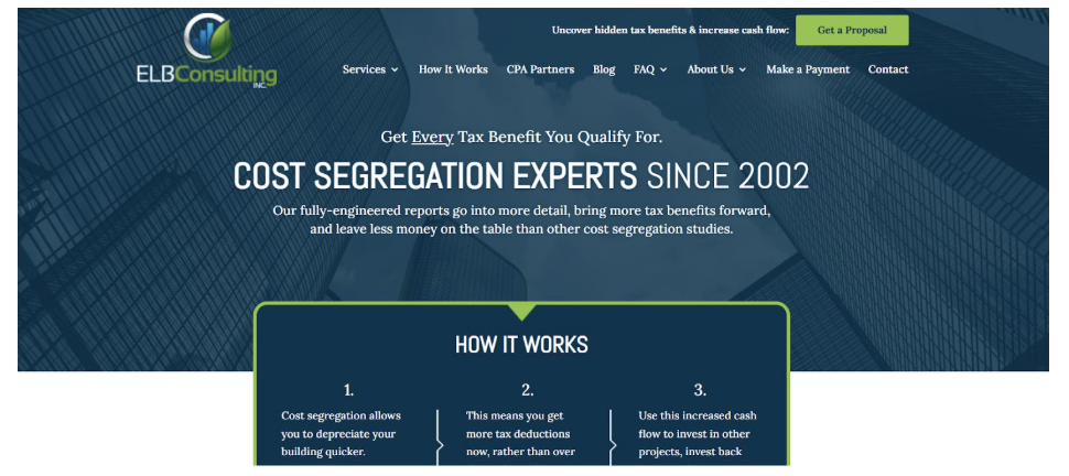 ELB Cost Seg focuses on small-to-mid-sized commercial properties, a segment that can be underserved by larger national firms. Their engagements include engineering-based analysis and site inspections tailored to projects typically under $10 million in value.
