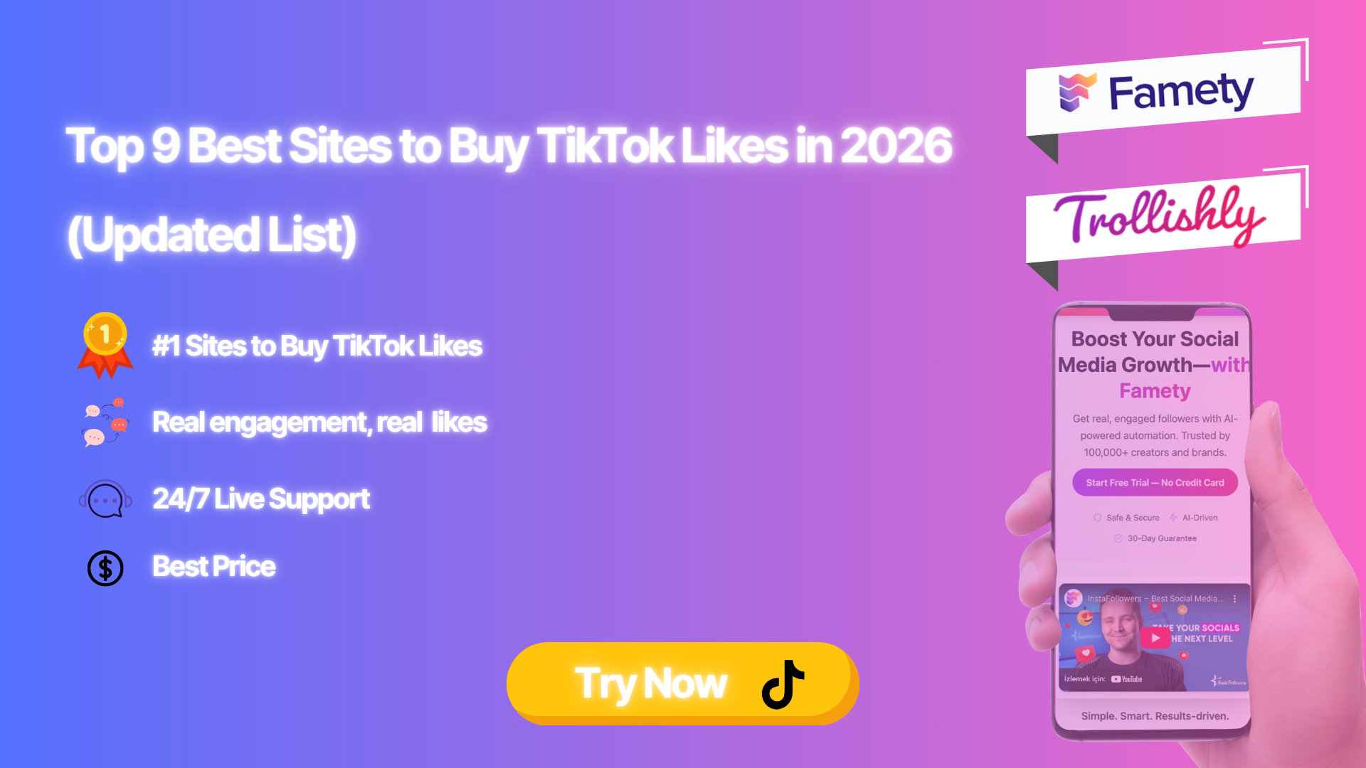 Pricing Transparency Check the complete checkout total before committing. Platforms like Famety and Trollishly display full pricing upfront. Hidden fees that appear only at the payment stage are a red flag for how the service handles everything else.