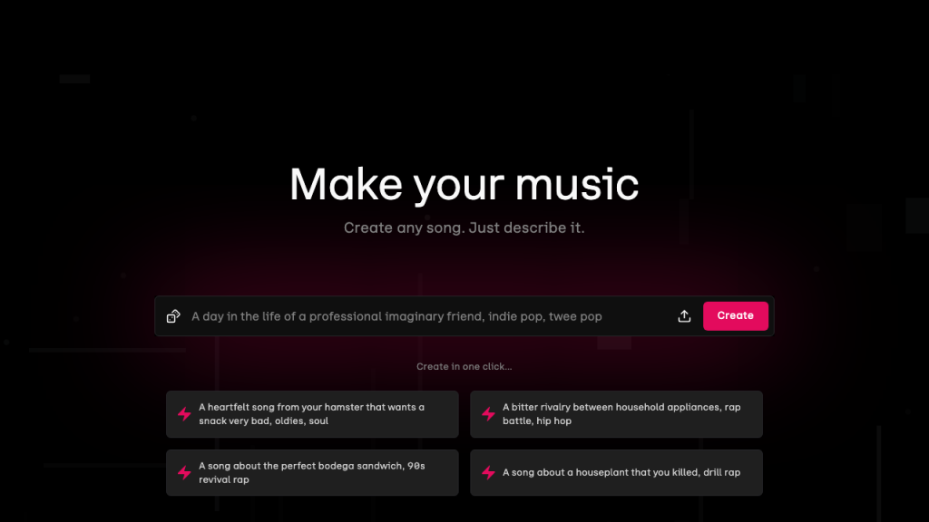 * Creative Text-to-Music: Interprets text prompts into creative, often surprising outputs, encouraging experimentation.