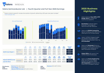 HOD HASHARON, Israel, Feb. 25, 2026 /PRNewswire/ — Valens Semiconductor Ltd. (NYSE: VLN), a leader in high-performance connectivity, today reported financial results for the fourth quarter and full year ended December 31, 2025.