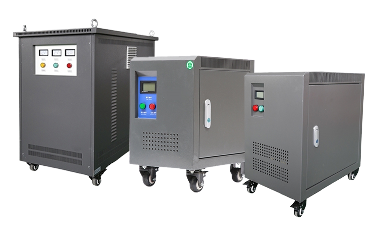 Isolation transformers clean up the power going to these AI devices. The noisy plant power stays on one side. Clean power comes out the other.