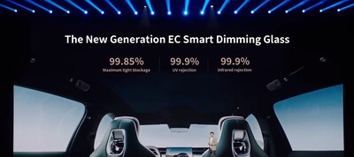 The new-generation black electrochromic sunroof offers seamless, software-driven control of natural light, eliminating the need for physical sunshades or films. In its darkest setting, the sunroof achieves a 99.85% light-blocking rate, delivering near-total solar shading. This ensures superior glare reduction, enhanced thermal insulation, and consistent passenger comfort across varying light conditions, while keeping a cleaner, more minimalist interior aesthetic. It sets a new standard for performance and reliability in automotive-grade smart glass.