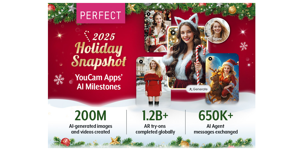 NEW YORK–(BUSINESS WIRE)–This holiday season, Perfect Corp. (NYSE: PERF) is celebrating one of its most successful years to date for its YouCam App Suite, driven by rapid global adoption of AI-first visualization experiences. Across YouCam Perfect, YouCam Makeup, YouCam Video, YouCam AI Pro, and YouCam Enhance, users embraced an unprecedented wave of creativity powered by multimodal Generative AI, AR visualization, and agentic AI workflows.