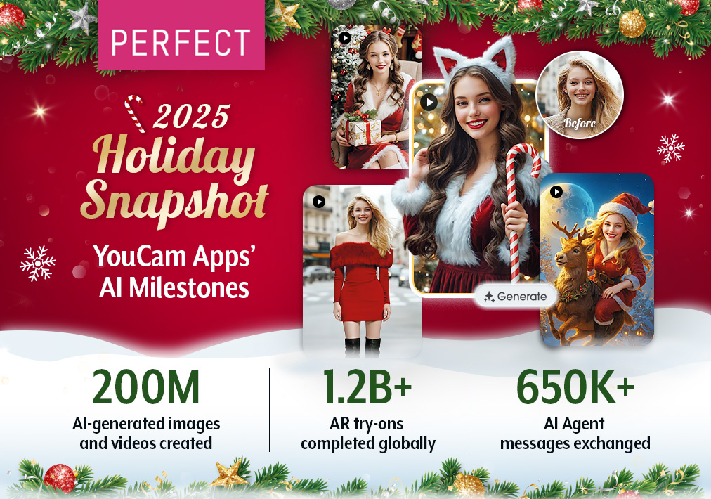 NEW YORK–(BUSINESS WIRE)–This holiday season, Perfect Corp. (NYSE: PERF) is celebrating one of its most successful years to date for its YouCam App Suite, driven by rapid global adoption of AI-first visualization experiences. Across YouCam Perfect, YouCam Makeup, YouCam Video, YouCam AI Pro, and YouCam Enhance, users embraced an unprecedented wave of creativity powered by multimodal Generative AI, AR visualization, and agentic AI workflows.