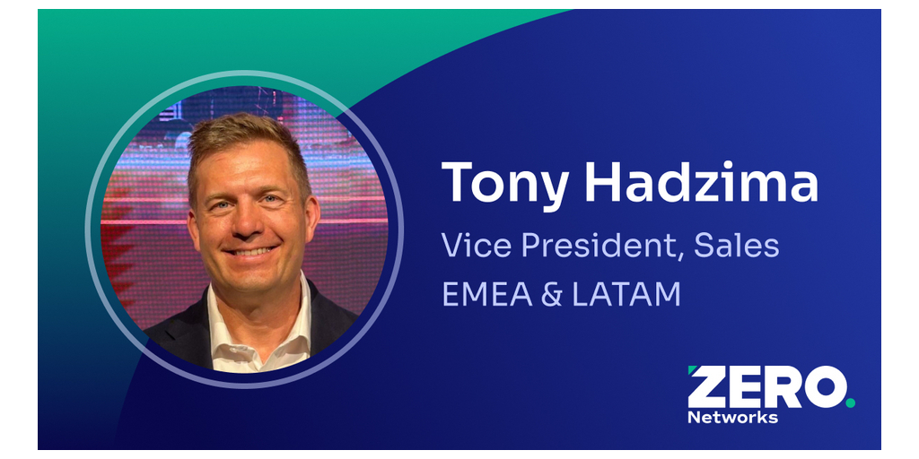 ORLANDO, Fla.–(BUSINESS WIRE)–Zero Networks, a leader in zero trust security solutions, today announced the appointment of Tony Hadzima as Vice President of Sales for EMEA and LATAM. This strategic hire supports the company’s global expansion goals and rising demand for its innovative microsegmentation and zero trust offerings.
